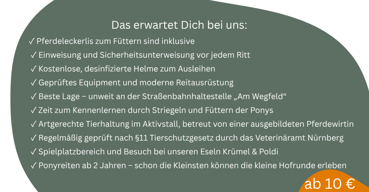Ja! Mit dem Nürnberg-Pass erhältst du 10 % Rabatt auf das Ponyreiten.